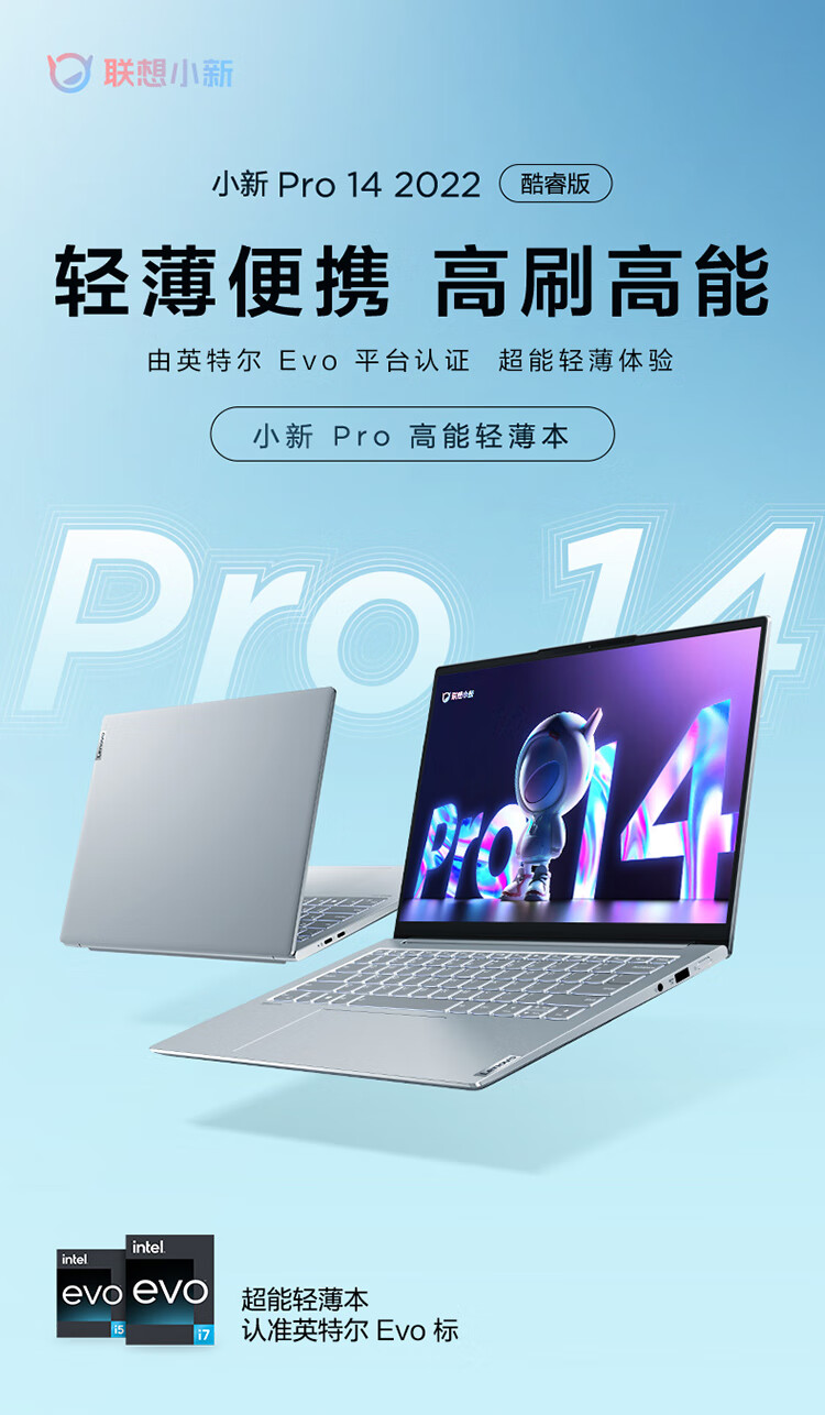 联想笔记本电脑小新Pro14 2022 英特尔酷睿i5 高性能游戏轻薄本(12代i5-12500H 16G 512G 2.8K 120Hz)银办公