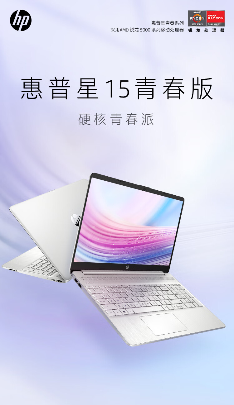 惠普HP 星15青春版 15英寸大屏网课轻薄笔记本电脑(8核锐龙R7-5700U 16G 512G 高速WIFI6 银色)