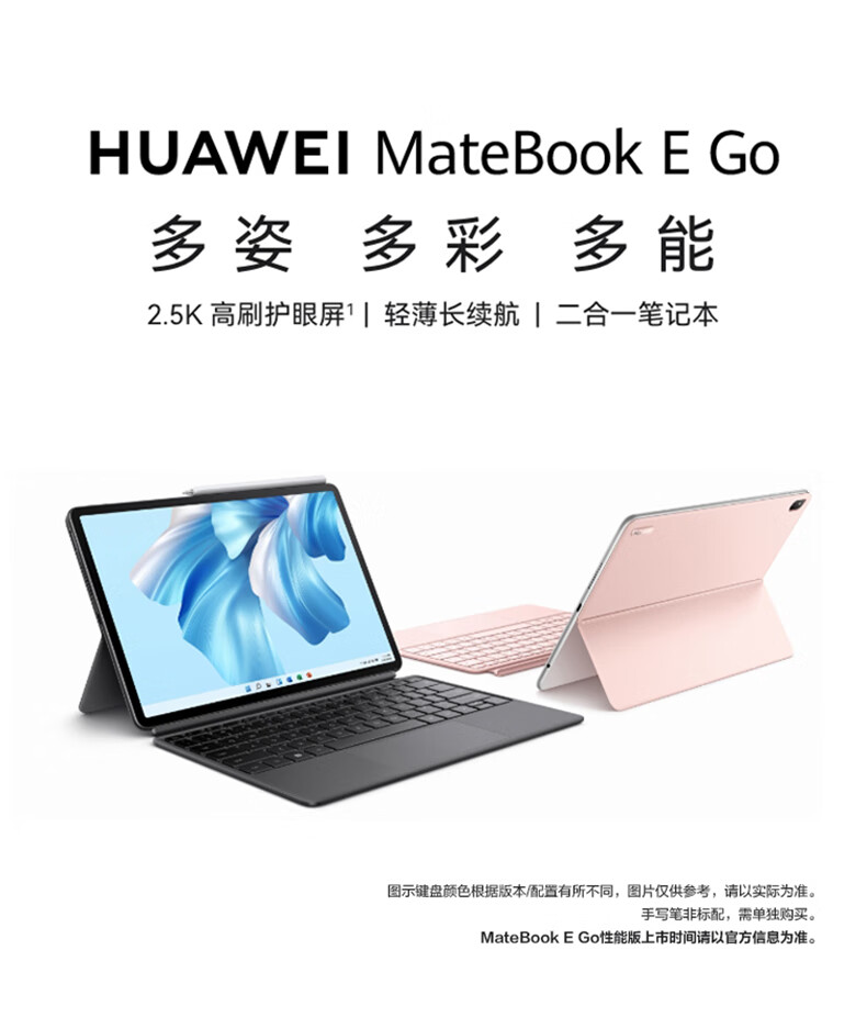 华为HUAWEI MateBook E Go 12.35英寸二合一笔记本电脑办公本 2.5K护眼全面屏 16+512GB LTE(星云灰)